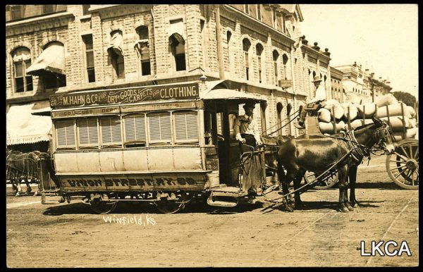 RPPC Winfield, KS Trolley c. 1907 Great p