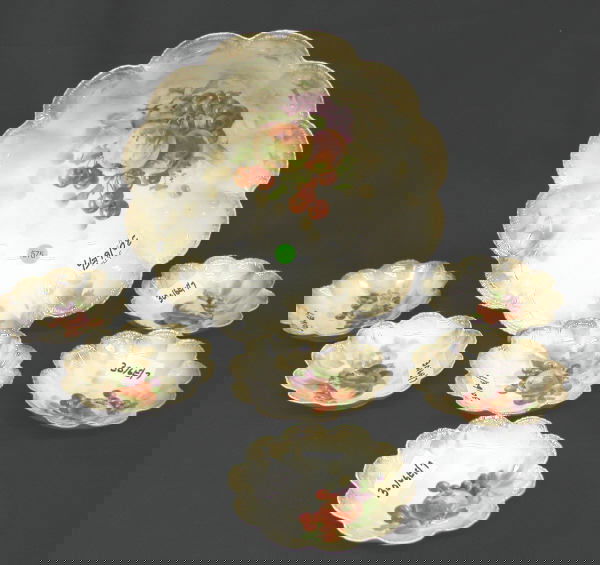 R.S. PRUSSIA BERRY SET W/ FRUIT PATTERN HANDPAINTE