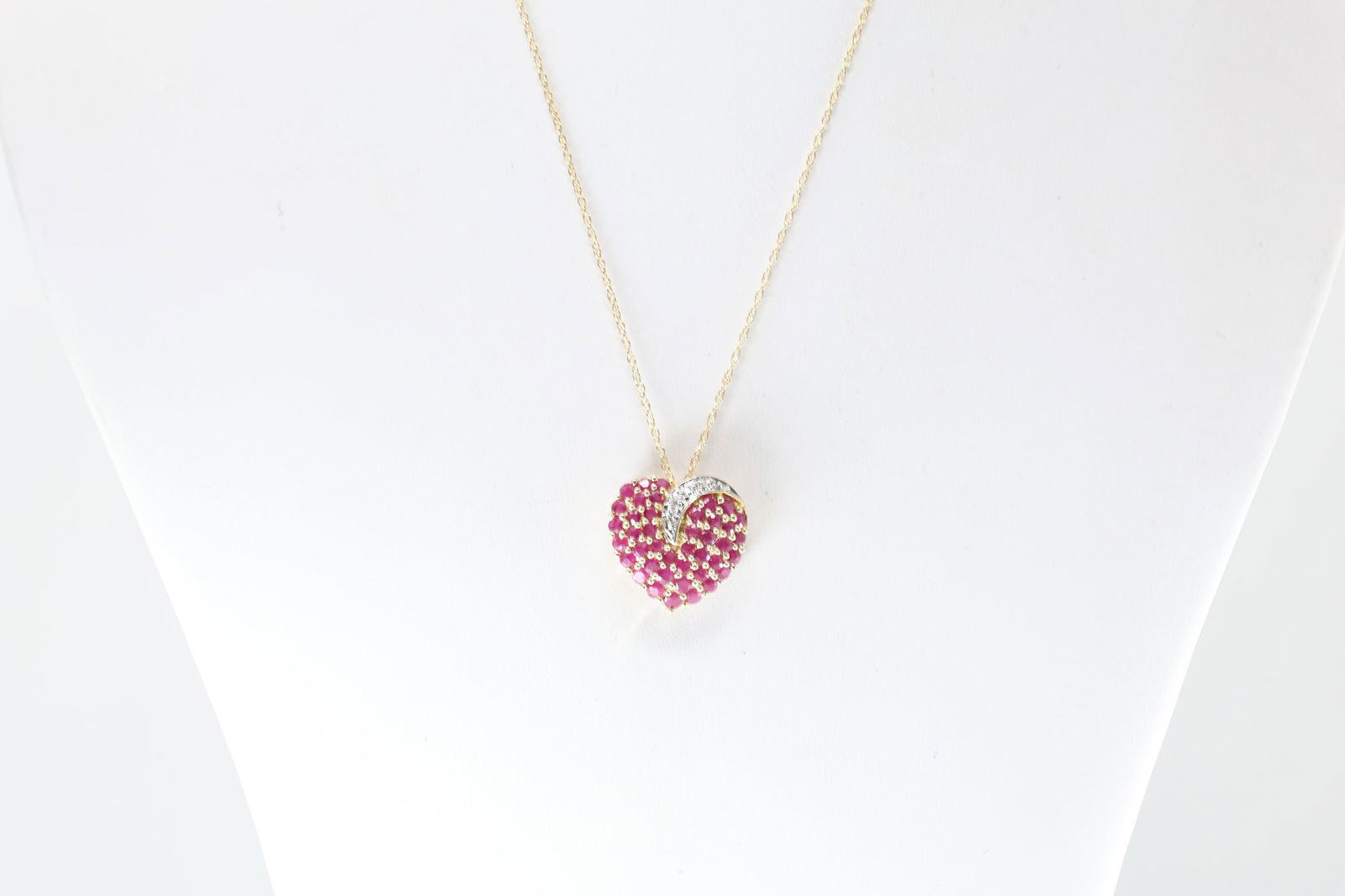 Ruby & Diamond Heart Pendant / Necklace 14Kt.