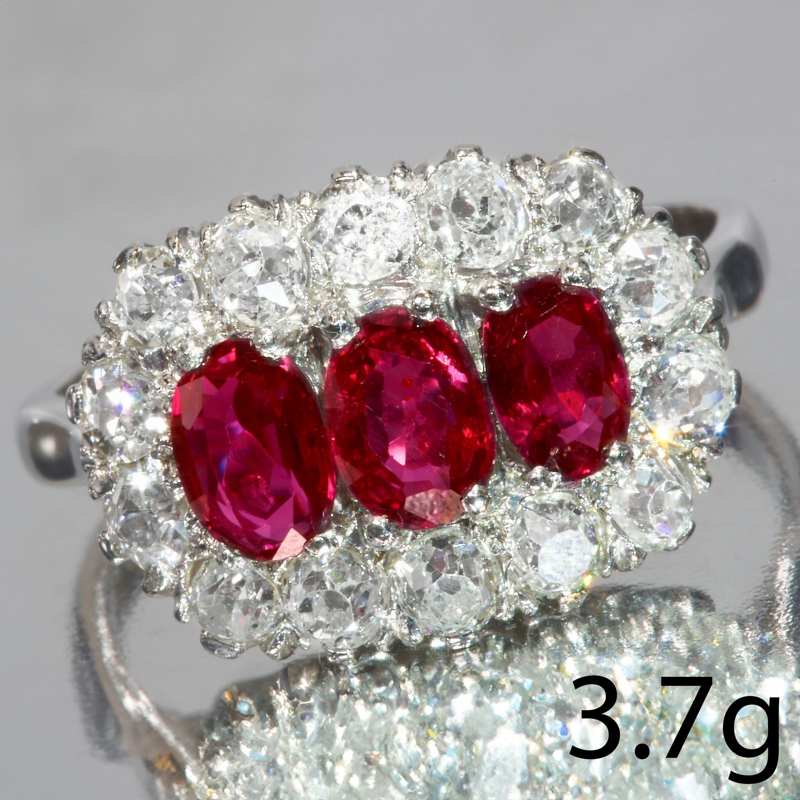 RUBY AND DIAMOND TRIPLE CLUSTER RING