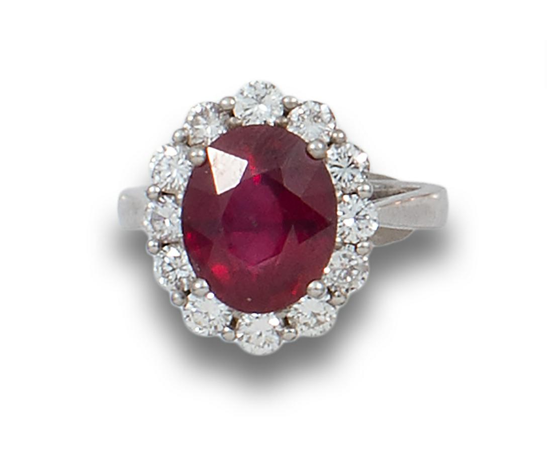 RUBY AND DIAMONDS ROSETTE RING, IN WHITE GOLD