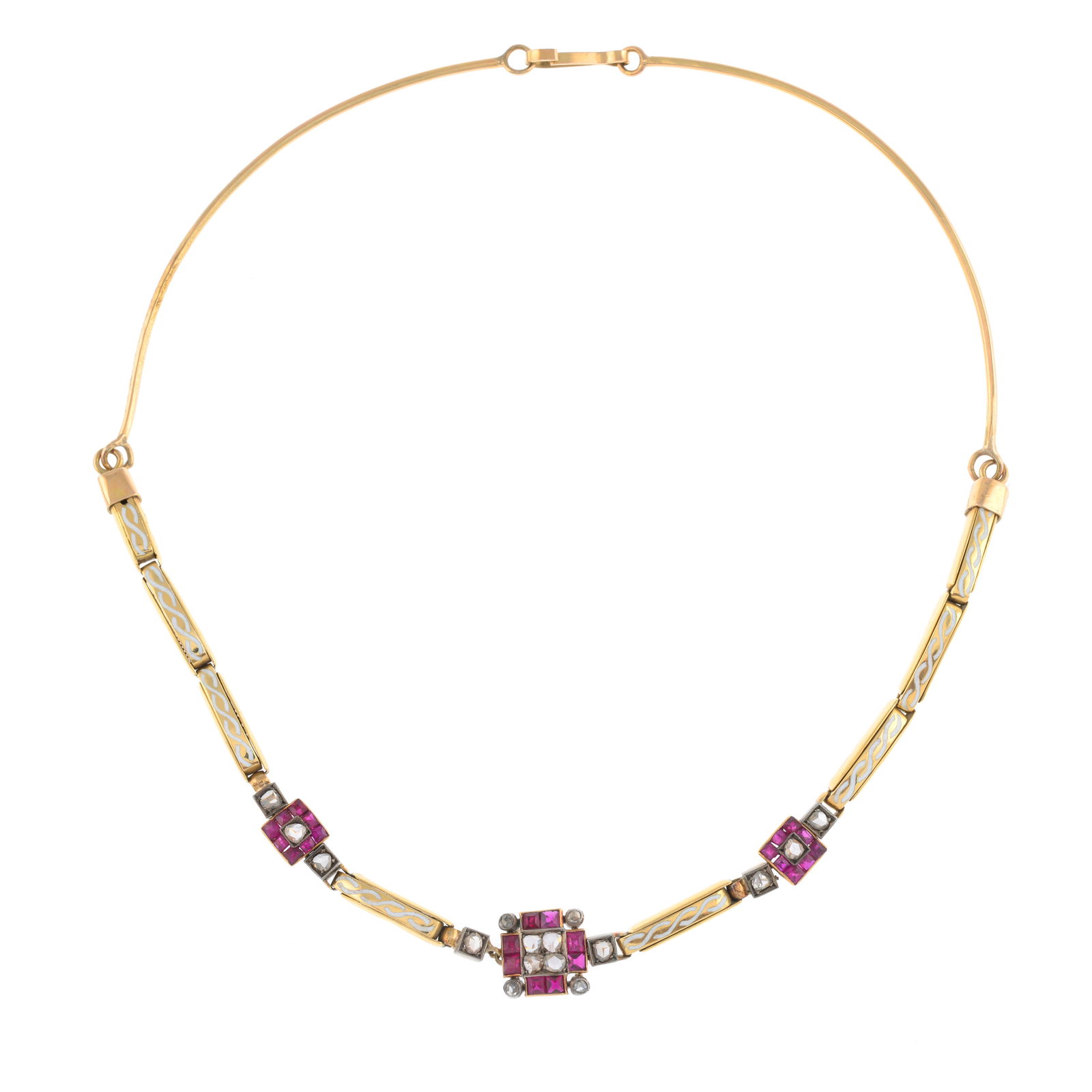 Ruby and rose-cut diamond necklace