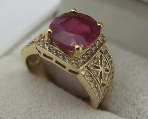 Natural Ruby Diamond Ring 3.21Ct 14k Y/g