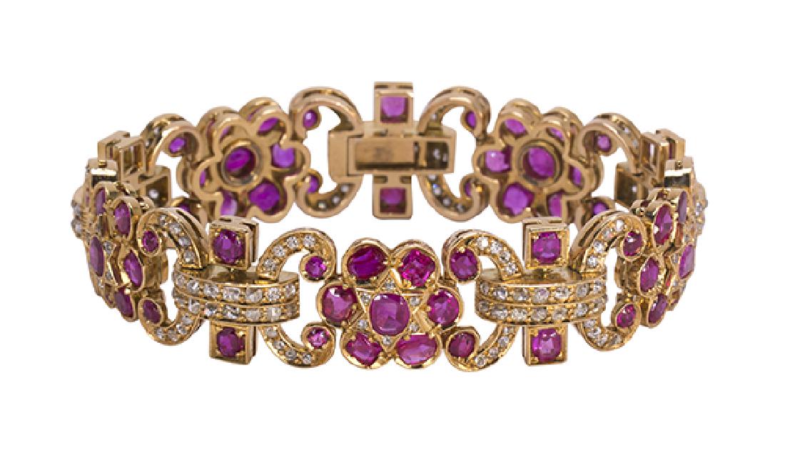 SoldDiamond and Ruby BraceletDiamond and Ruby Bracelet 14k yellow gold, the bracelet mounted with oval-cut treated rubies weighing approximately 4.00 carats in total, accented by round brilliant-cut diamonds weighing approximatelSee Sold Price