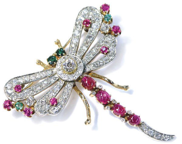 ruby diamond emerald dragonfly pin
