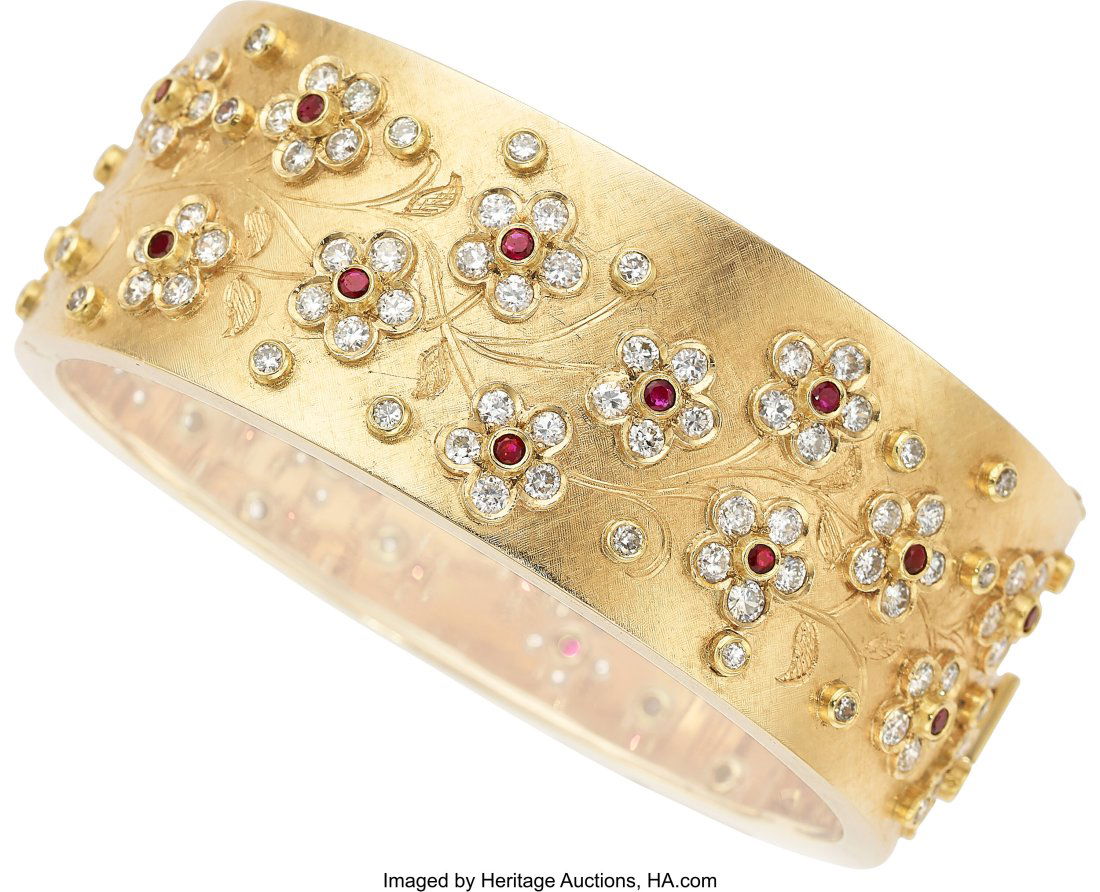 18 kt. Exclusive 18K Yellow Gold 5.20ct Ruby and 7.02ct Diamond Hinged Bracelet, Yellow gold -Eastern European Art Gallery Inc$500Mar 14, 2026