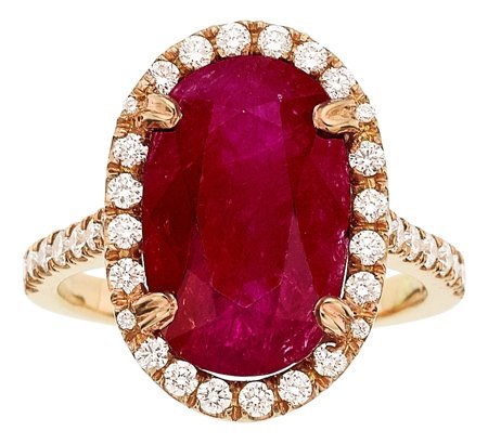 Ruby, Diamond, Gold Ring The ring features an o