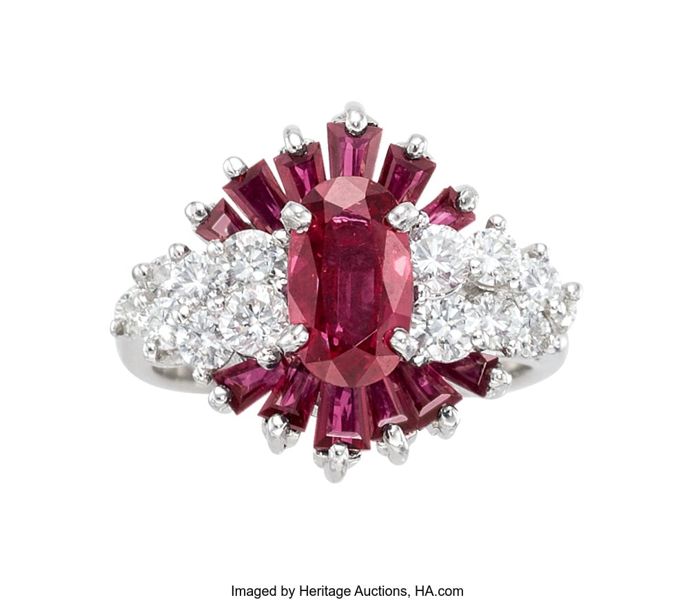 Ruby, Diamond, Platinum Ring Stones: Oval and b