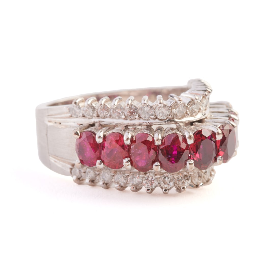 Ruby, Diamond, Rhodium-Plated White Gold Ring.
