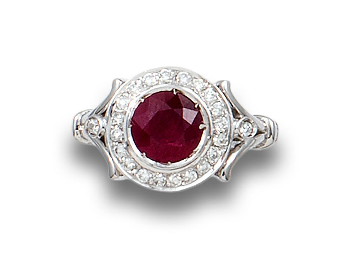 18K White Gold Ladies Ring with 1.52ct Natural Ruby and 1.20ct tw Adjacent DiamondsRiverside Galleries4.4(202)$505 days Left