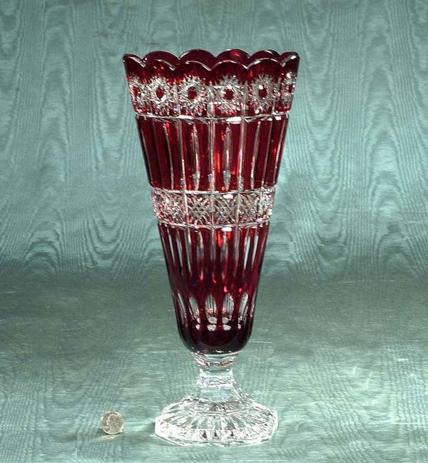 Ruby Overlay Cut Crystal Vase With Scalloped Top