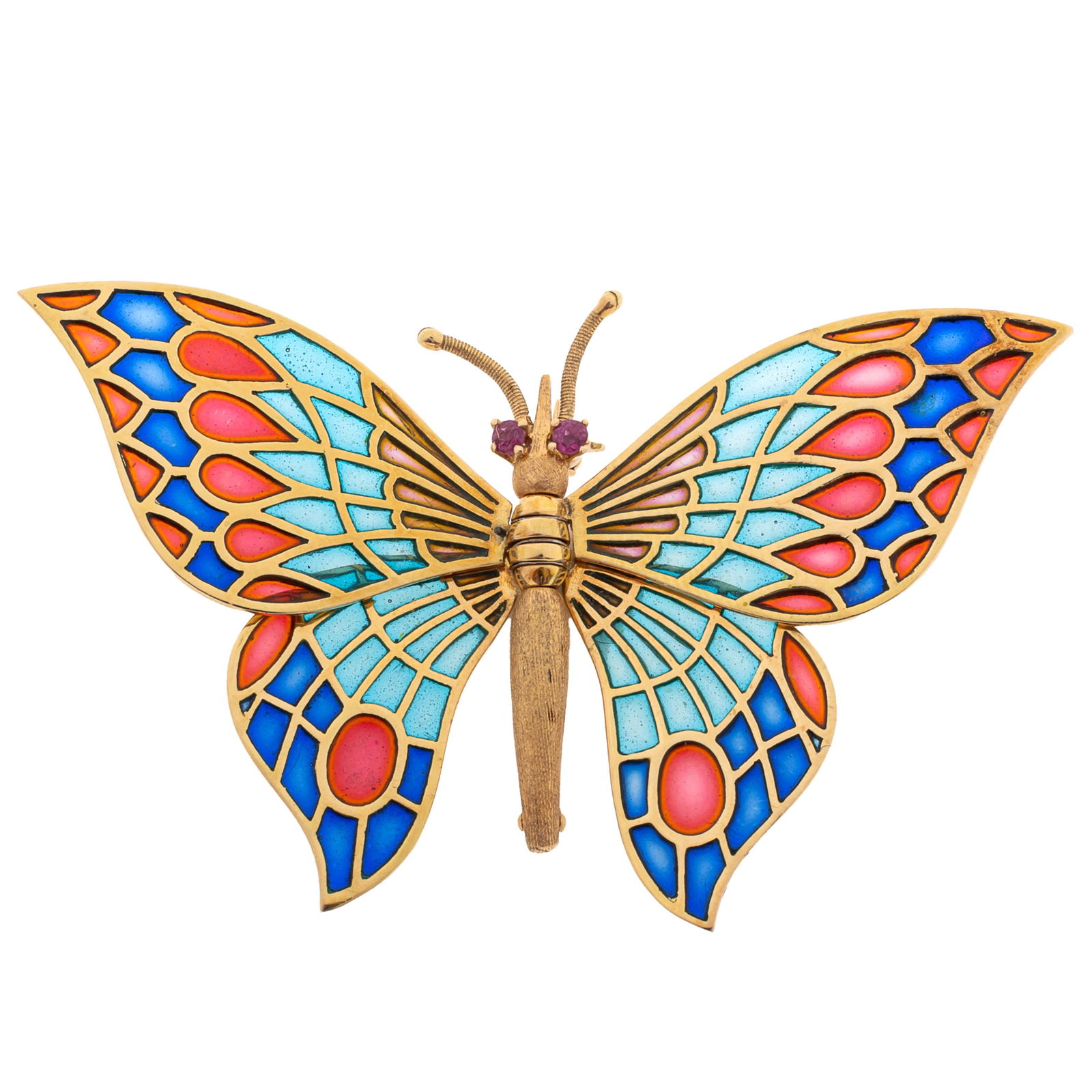 Ruby, Plique-A-Jour, 18k Butterfly Pin