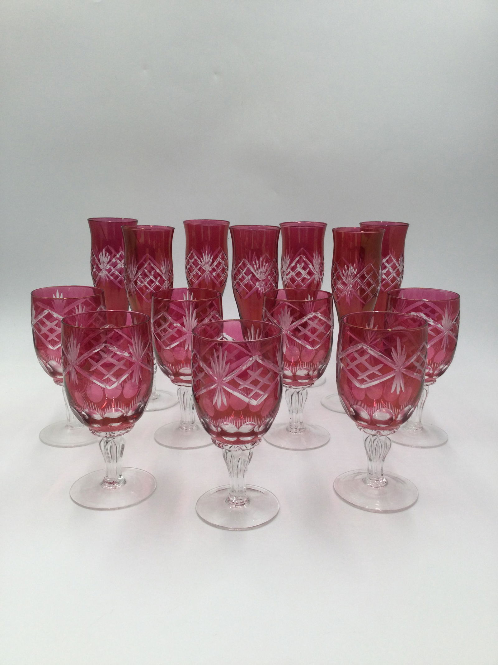 Ruby Red Cut To Clear 14 Piece Glassware Set