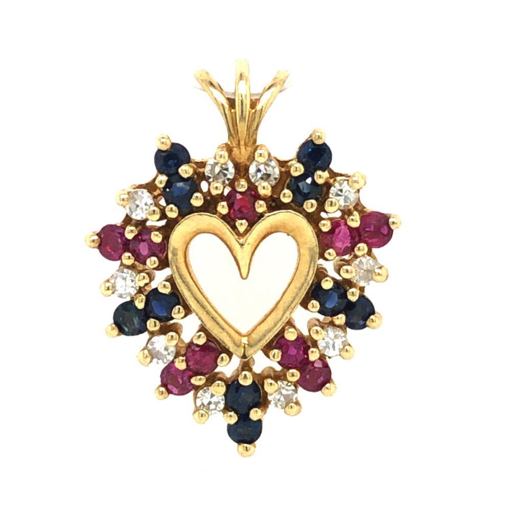 Ruby, Sapphire, and Diamond Heart Pendant