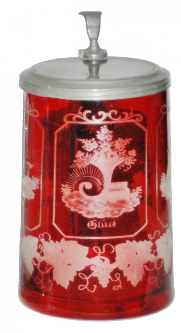 Ruby Stained Wheel Cut Friendship Glass Stein