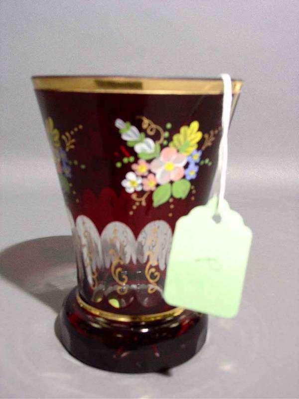 Decorative Hand Painted Glass Goblet with Floral and Gilt Decoration7 days LeftCrystal Clear Roses Floral Vase With Gold TrimMar 25, 2026Vintage Bohemian Ruby Cut-to-Clear Glass Vase with Ornate DesignsBohemian Ruby and Clear Enameled Art GlassMar 28, 2026A PAIR BOHEMIAN CLEAR AND RED RUBY GLASS VASES, 19TH CENTURY2 days LeftRed Glass Vase with Gilt Base7 days LeftBohemian Style Gilt Glass Vase A2 days LeftEmile Galle cameo glass vase with red floral decorations, vase is 7 7/8" tall, in good condition.6 days LeftThin-walled vaseMar 20, 2026Vintage Bohemia Cut Crystal Glass VaseMar 20, 2026Galle Style Red Amber Toned Cameo Glass Grape Cluster And Foliage VaseApr 12, 202619th C. Bohemian Diamond Cut Goblet3 days LeftAN IMPOSING BOHEMIAN OVERLAY GLASS VASE5 days Left19th C. Bohemian Ruby Red Glass Vase With Enamel Flowers3 days LeftMoser Cranberry Red to Clear Gold Encrusted Cabochon Glass Wine Goblet c1900Mar 15, 2026Bohemian Ruby Red Cut to Clear Decanter and Cordials (6)Mar 28, 2026