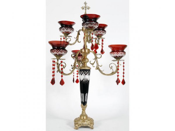 Ruby to Clear Candle Holder in Bronze Mounts