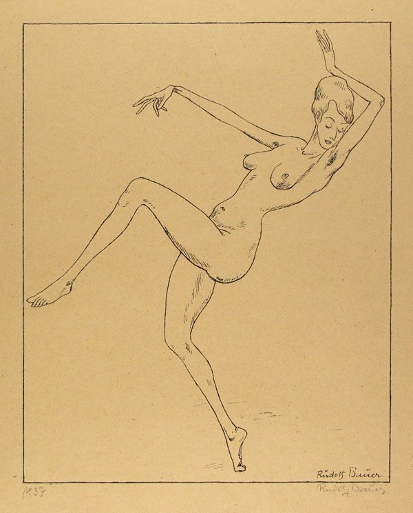 Rudolf Bauer, Nude Dancer.-Lithograph.