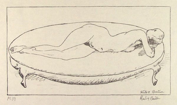 Rudolf Bauer, Nude Lying on Couch.-Lithograph.