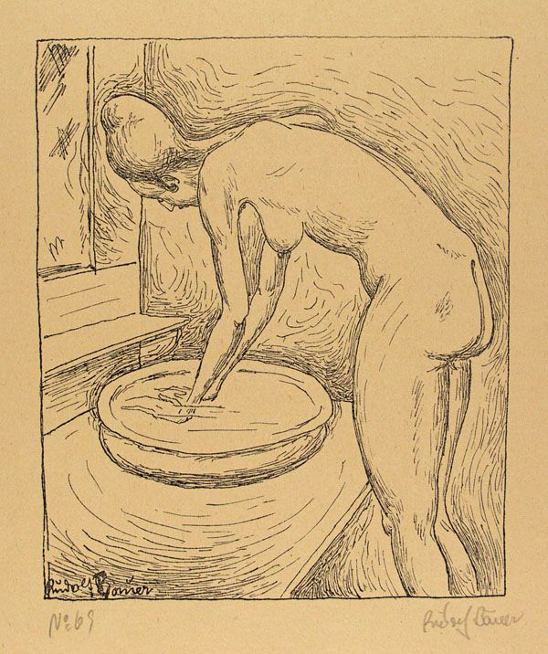 Rudolf Bauer, Nude Washing Hands.-Lithograph.