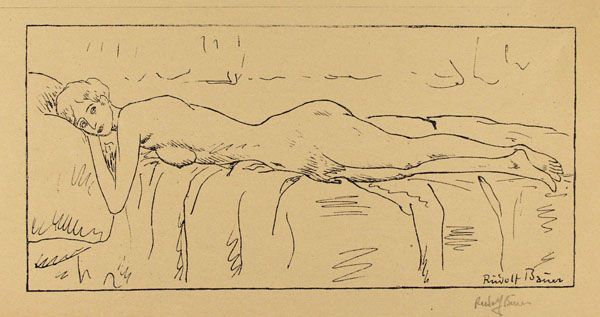 Rudolf Bauer, Reclining Nude [No. 4].-Lithograph.