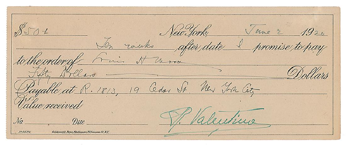 Rudolph Valentino Signed Document