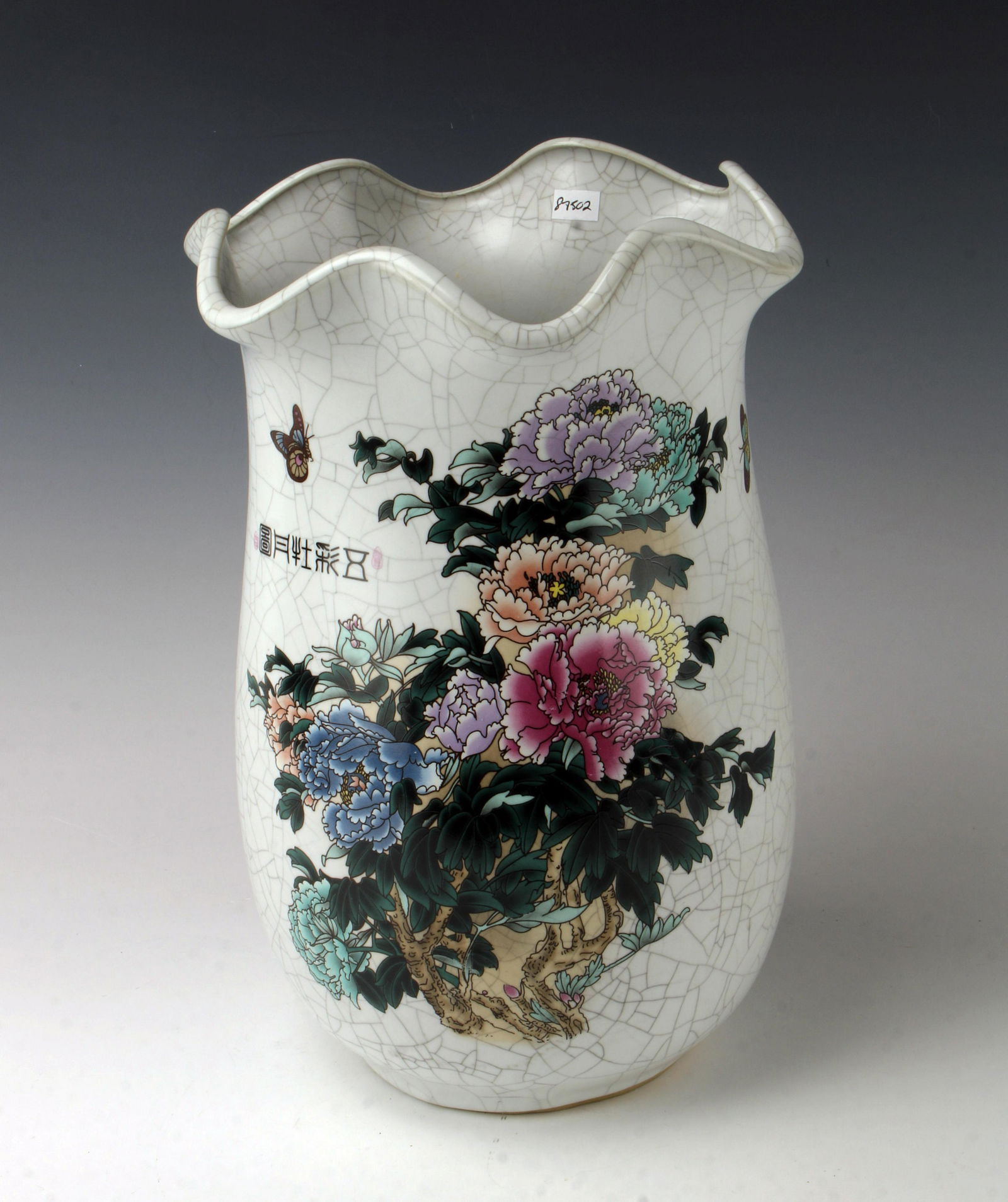 RUFFLED RIM VASE WITH GARDEN SCENE