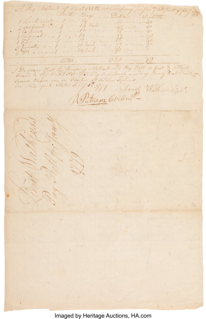 Rufus Putnam document signed ("R. Putnam Col. Co