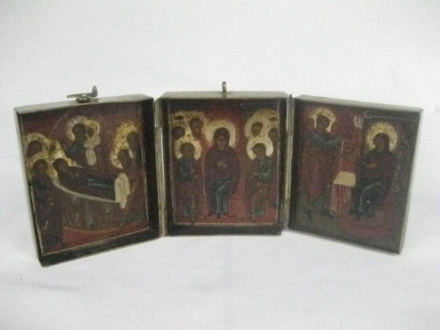 RUSSIAN BRONZE TRAVELER'S ICON TRYPTICH of SELECTED SAINTS antique 18 centuryChairish Auctions4.5(10.4k)$75