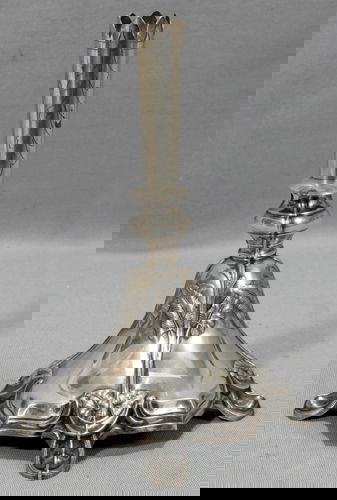 SoldPair of Imperial Russian .875 Silver CandlesticksPair of Imperial Russian .875 Silver Candlesticks, reign of Alexander II, Moscow 1880 assay mark rubbed, 84 zolotnik mark, h. 15 3/8 in., total wt. 42.85 troy ozs.See Sold Price