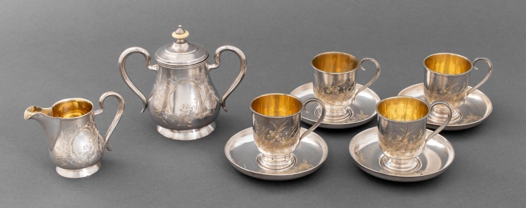20PC LOT OF STERLING SILVER ITEMS, 44.3 T.O.W.4 days LeftENGLISH GILT-DECORATED PORCELAIN TEA ARTICLES, LOT OF 112 days LeftENGLISH SILVER LUSTRE CERAMIC TEA AND COFFEE ARTICLES, LOT OF SIX1 day LeftFive Piece English Silver Plate Tea ServiceMar 12, 2026Gorham Sterling Silver Tea and Coffee Service, 64 days Left19C ANTIQUE RUSSIAN SILVER TEA COFFEE SET SPER 18324 days LeftSilver Plated Tea Service Grouping (6)4 days Left6PC STERLING TEA SERVICE, INTERNATIONAL, 133 TOW4 days LeftE.G. WEBSTER & SON SILVER-PLATED FIVE-PIECE COFFEE AND TEA SERVICE1 day LeftENGLISH SILVER LUSTRE CERAMIC TEA AND COFFEE 21-PIECE PARTIAL SET1 day LeftWonderful Chinese Export Silver Four Piece Tea and Coffee Service, c.1890,Mar 14, 2026American Silver Four-Piece Tea and Coffee ServiceMar 14, 2026Thomas Warner (Baltimore) American Silver Three-Piece Tea Service, c. 1810-18306 days LeftA collection of silver tea wares various makers and dates (5)German Hand Chased Angkor .900 Silver Tea Service Set559 Lots AwaySix Piece Tea Service, Solid Sterling Silver, Marked Dominick And Haff, Model #1072Apr 18, 2026
