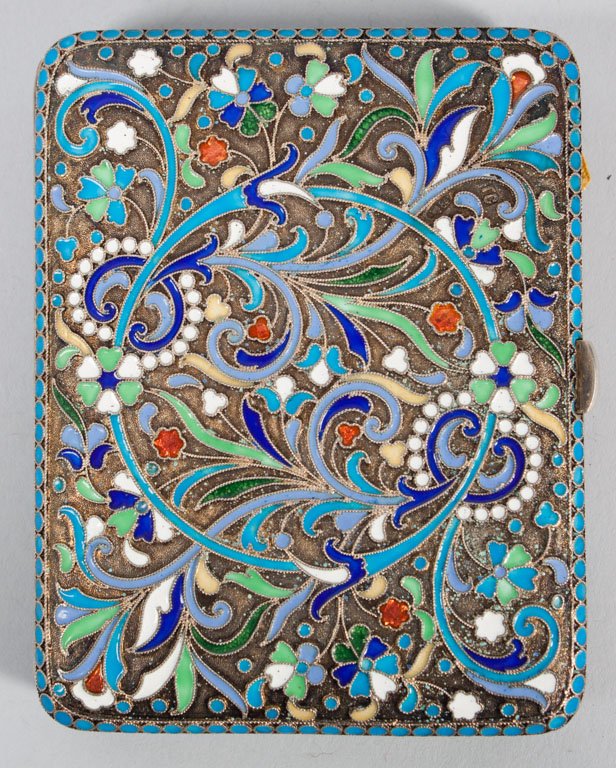 Russian cloisonne enamel silver cigarette case