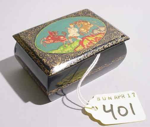 Lot Of Three Vintage Russian Lacquered Paper Mache BoxesFeb 28, 2026(3) ORMOLU-MOUNTED PEKING GLASS VANITY BOXES & ENAMELED CASKET5 days LeftRussian Kholuy Lacquer Fairy Tale Jewelry BoxFeb 26, 2026Russian Black Lacquered Papier Mache Trinket BoxApr 14, 2026A Large Russian Palekh Lacquer Box, Hunting Scene19 hrs LeftIndian Lacquered Box with Polo Scene, Mughal-Style Decoration4 days LeftLARGE ANTIQUE CHINESE PAINTED LACQUERED JEWELRY BOXMar 01, 2026Fine Collectible Vintage Russian Hand -painted Lacquer Trinket Box w/Image of Saint Mary MagdaleneMar 01, 2026A Thai Black Lacquerware Box with Gilt Decoration7 days LeftVINTAGE RUSSIAN PALEKH LACQUER LIDDED BOX TROYKAMar 01, 2026A Chinese Export Gilt Lacquer Box, Canton, Qing dynasty(1644-1912)4 days LeftVintage Russian "The Golden Cockerel" Lacquered Paper Mache BoxFeb 28, 2026Wooden lacquer box with gold-painted auspicious and longevity motifs.12 hrs LeftVintage Chinese Gilt Lacquer Trinket Box with Hand-Painted MedallionFeb 26, 2026Russian Lacquer BoxSigned Russian Kholuy Lacquer Box, 'Kupavushka' by L. Poturaiko2 days Left
