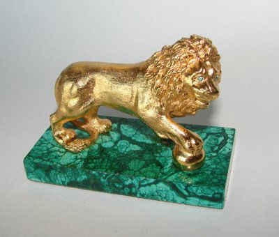 Russian dore bronze malachite Lion figure.