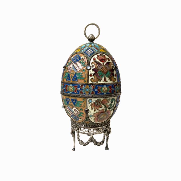 Russian Silver, Enamel & Semi Precious Stone EggMar 18, 2026RUSSIAN SILVER CLOISONNE ENAMEL EGG PENDANTMar 21, 2026RUSSIAN SILVER CLOISONNE ENAMEL EGG PENDANTMar 21, 2026Kaleidoscopic Russian Faberge Treasure Egg1 day LeftKaleidoscopic Russian Faberge Treasure EggMar 12, 2026Kaleidoscopic Russian Faberge Treasure EggMar 18, 20261912 Royal Russian Napoleonic Inspired EggMar 12, 2026Faberge Egg Decorated with Flowers4 days Left1895 Twelve Monograms Royal Imperial Metal Easter EggMar 19, 20261912 Royal Russian Napoleonic Inspired Egg4 days LeftIMPERIAL FABERGE ENAMELED LIMOGE PORCELAIN EGG7 hrs LeftA LARGE IMPERIAL FABERGE LIMOGES PORCELAIN AND STERLING SILVER EGG7 hrs LeftRUSSIAN PORCELAIN EGG fr. CHRISTIE'sMar 21, 2026Late 19th Century Russian Silver and Enamel Egg,Mar 13, 202614 kt. Yellow gold, Imperial Russian Faberge Jewelled 56K Gold and Enamel Egg Pendant HenrikMar 14, 20261914 Mosaic Royal Russian Egg 2.6 InchesMar 19, 2026