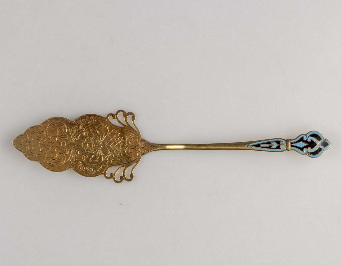 Russian Enameled Silver Cake Knife