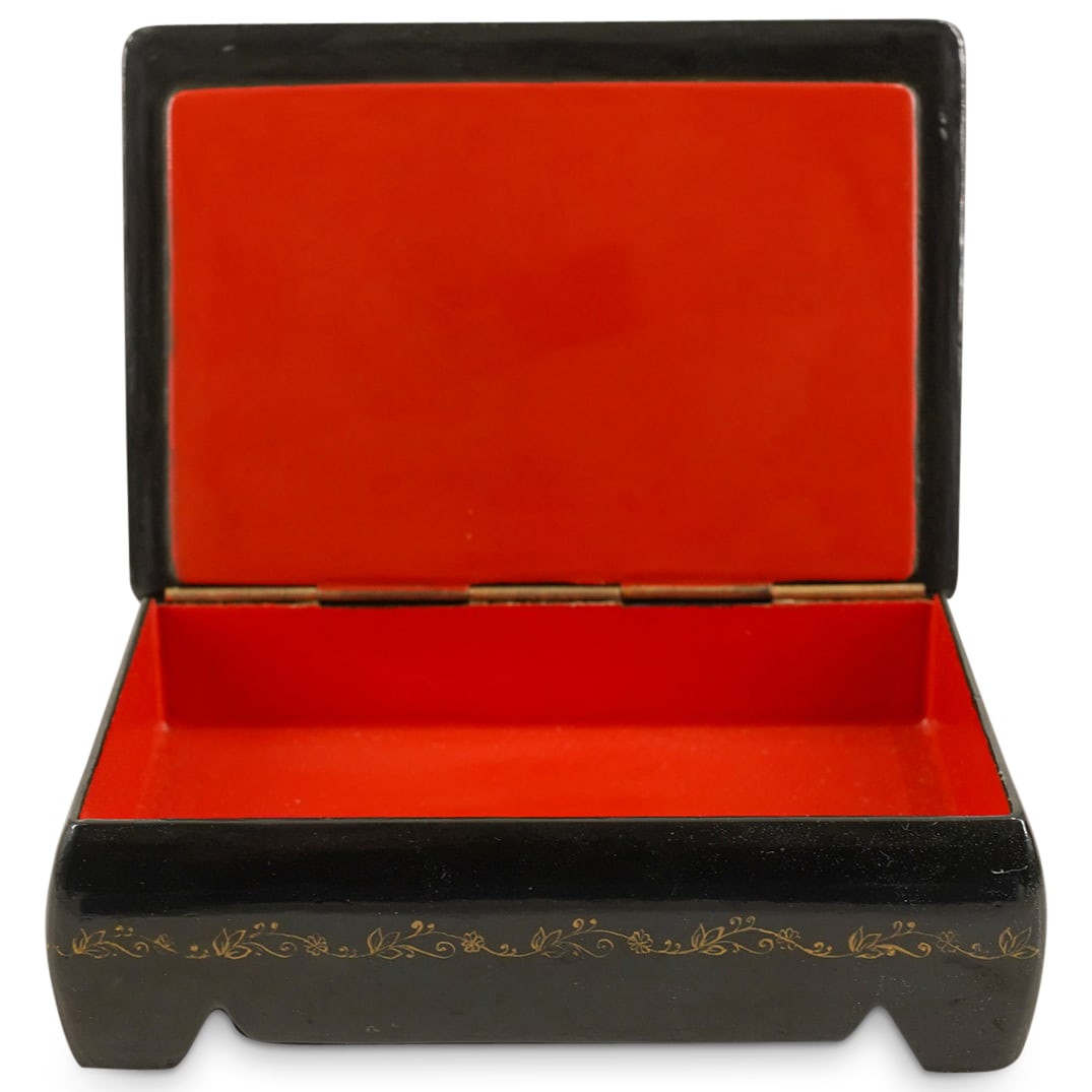 LOT OF THREE CHINESE VINTAGE JEWELRY BOXESMar 01, 2026(2) JAPANESE LACQUERED MOTHER-OF-PEARL INLAID TABLE BOXES4 days Left(4) JAPANESE LACQUERED TABLE BOXES, 1 WITH MOP INLAY3 days LeftLate Qing/Republic Period, Bamboo Filigree (Reed) Carved Box with Landscape and Figure MotifsMar 02, 2026Russian Kholuy Lacquer Fairy Tale Jewelry BoxFeb 26, 2026Antique Chinese Lacquered Wood Box With Ceramic Inlay5 days LeftRussian Black Lacquered Papier Mache Trinket BoxApr 14, 2026Late Qing Dynasty Papier Mache & Porcelain Wedding BOX4 days LeftA lacquered 'sumiakabako' red-cornered cosmetics box, Edo period (1603-1868), Japanese,7 days LeftLacquerware Carry Case with Gilt - bronze WashbasinMar 08, 2026Vintage Russian "The Golden Cockerel" Lacquered Paper Mache BoxFeb 28, 2026Fine Collectible Vintage Russian Hand -painted Lacquer Trinket Box w/Image of Saint Mary MagdaleneMar 01, 2026Hand-Painted Floral Jewelry BoxMar 05, 2026A finely crafted jade bracelet is housed inside a lacquerware collection box made by the Qianlong9 hrs LeftANTIQUE JAPANESE KOMAI STYLE DAMASCENED IRON BOXMar 07, 2026Copper and Wood Lined Cigar Box, 1st Half 20th CenturyFeb 28, 2026