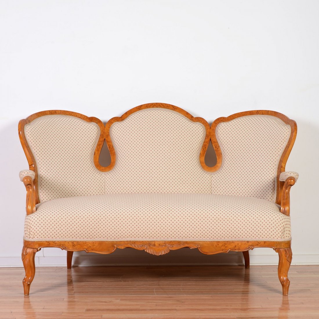Russian figured birch triple back settee