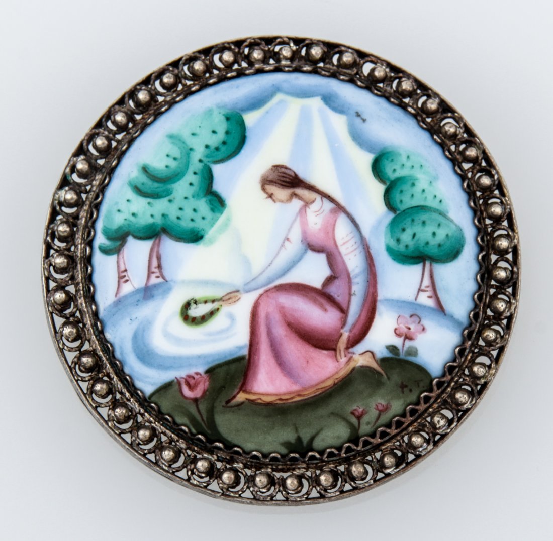 Russian Hand Painted Enamel Brooch