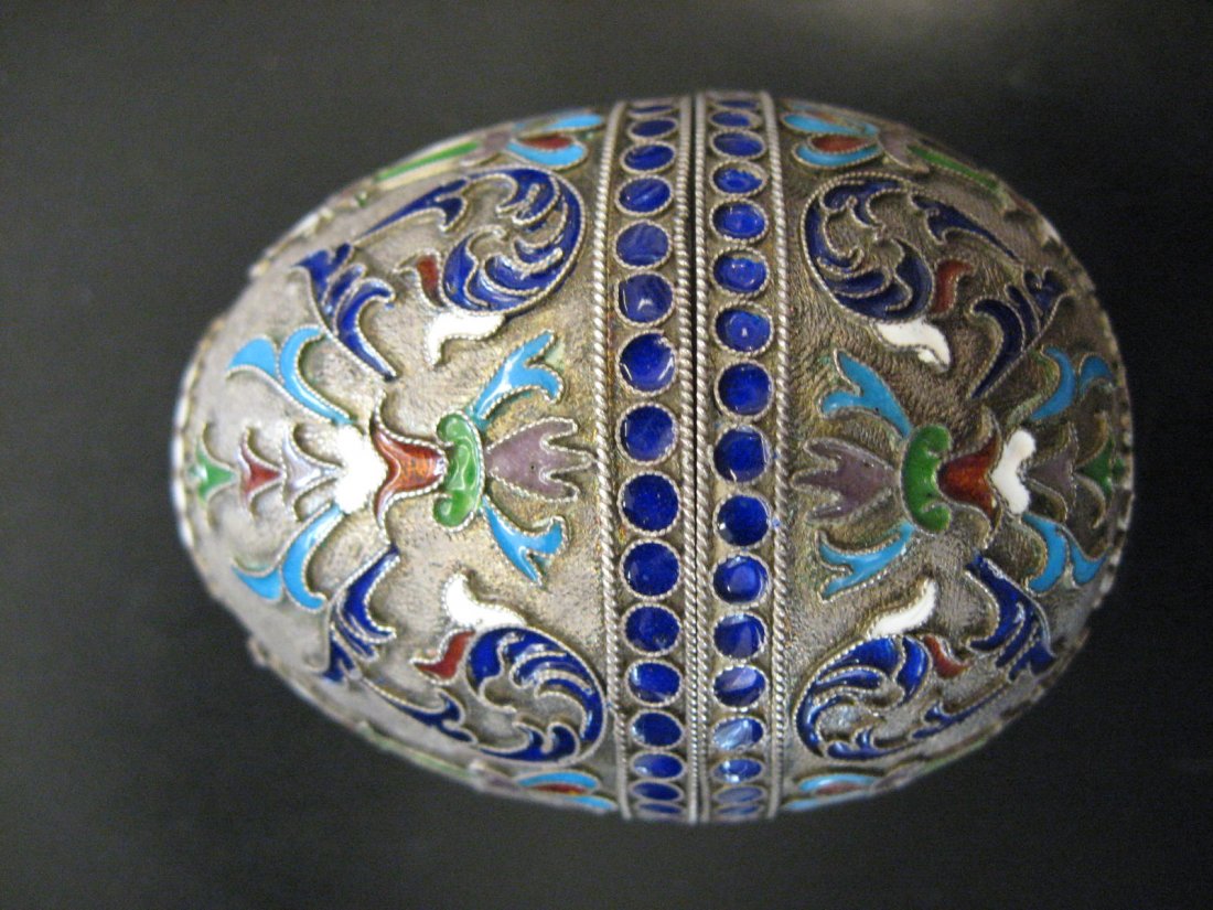 Enamel Egg Box Trinket Vintage Lot# DG 6073 days LeftAntip Kuzmichev Late 19th C Russian Imperial 88 Silver Floral Cloisonne EggFeb 15, 2026RUSSIAN SILVER CLOISONNE ENAMEL EGG PENDANT20 hrs LeftA LARGE SILVER AND ENAMEL EGG PENDANT. 15.6 grams. 3.75 cm x 2.5 cm.5 days LeftRussian Imperial 88 Silver Enameled Cloisonne Floral Egg Box With Footed StandFeb 15, 2026RUSSIAN SILVER CLOISONNE ENAMEL EASTER EGG PENDANTFeb 21, 2026RUSSIAN GILT SILVER PLIQUE A JOUR ENAMEL EASTER EGGFeb 21, 2026RUSSIAN SILVER CLOISONNE ENAMEL EASTER EGG PENDANTFeb 21, 2026RUSSIAN SILVER GUILLOCHE ENAMEL EGG PENDANT20 hrs LeftA RUSSIAN SILVER AND GUILLOCHÉ ENAMEL EGG-SHAPED PENDANT, LATE 19TH–EARLY 20TH CENTURYFeb 15, 2026RUSSIAN SILVER ENAMEL EASTER EGG ON STAND W RUBYFeb 21, 202619th C. Austrian Viennese Enamel Silver egg/Lidded Box6 days LeftRUSSIAN SILVER GUILLOCHE ENAMEL PERFUME BOTTLEFeb 22, 20261895 Twelve Monograms Russian EggFeb 18, 2026Vintage Russian Enameled Metal Trinket BoxFeb 28, 2026Russian Imperial 84 Silver Enameled Cloisonne Swan Egg Box With Footed StandFeb 15, 2026