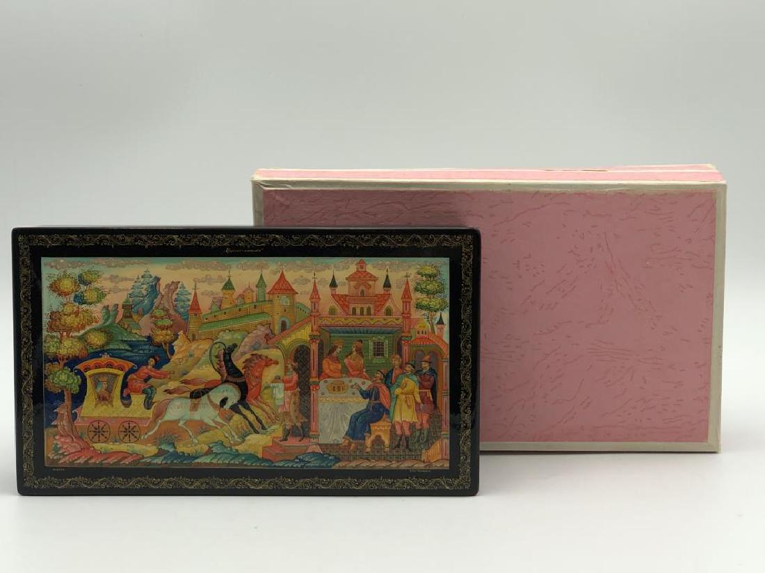 Lot Of Three Vintage Russian Lacquered Paper Mache BoxesFeb 28, 2026Lot of Seven Hand Painted Wood & Paper Mache Boxes1 day Left(2) JAPANESE LACQUERED MOTHER-OF-PEARL INLAID TABLE BOXES6 days LeftANTIQUE LACQUER CHINESE BOX WITH SWEETMEAT DISHES6 days LeftVINTAGE RUSSIAN PALEKH LACQUER LIDDED BOX TROYKAMar 01, 2026USSR RUSSIAN HAND PAINTED PALEKH WOODEN JEWELRY BOX AND NOTEBOOK6 days LeftChinese Export gilt lacquer gaming box5 days LeftRussian Black Lacquered Papier Mache Trinket BoxApr 14, 2026Russian Lacquer Miniature Box, Palekh School, Folk Tale Scene, 20th Century3 days LeftFormerly in the collection of a Qing Dynasty Qianlong period famille rose square brush pot with5 days LeftA Large Russian Palekh Lacquer Box, Hunting Scene3 days LeftA GOLD-MOUNTED GERMAN PORCELAIN ‘CARNET DE BAL’ PROBABLY 2ND QUARTER 19TH CENTURY,4 days LeftWooden hand-painted gilded and colored lacquerware food box with handle4 hrs LeftVintage Russian "Medieval Scene" Lacquered Paper Mache BoxFeb 28, 2026An Exquisite Jun yao Purple Glazed Phoenix-Ears Vase,with an Imperial Poem by Emperor QianlongMar 15, 2026An Exquisite Famille-Rose Yellow Ground Painted Gold Woman Pattern Brush PotMar 07, 2026