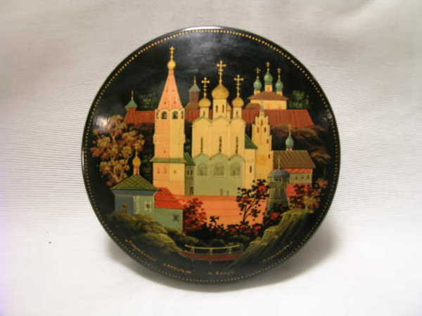 RUSSIAN LACQUERED BOX SIGNED ROUND