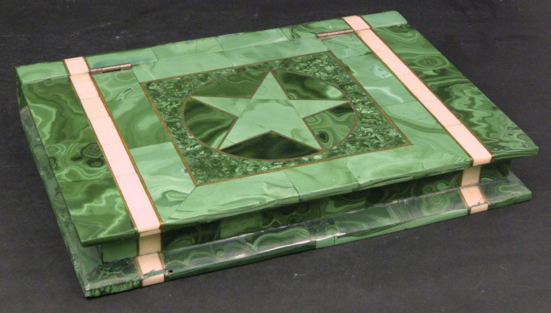 RUSSIAN MALACHITE FIGURAL BOOK BOX