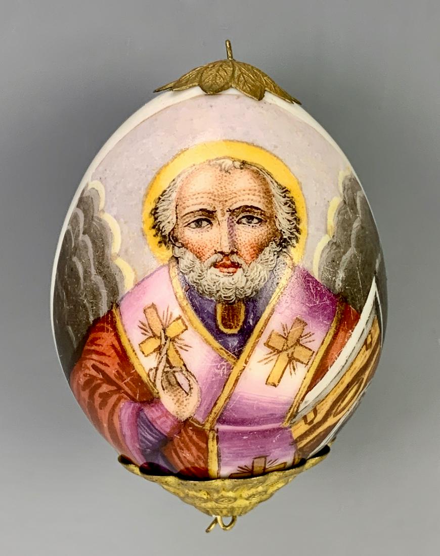 RUSSIAN PORCELAIN EASTER EGG St.NICHOLAS, 19c.