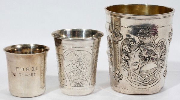 Lot 4 Vintage Emb Silver Plated Tableware India+Mar 04, 2026European Silver Kiddush Cups3 days LeftRussian Silver Cups3 days LeftContinental Silver Kiddush Cups3 days LeftSilver Cups, Russia3 days LeftSet of 4 cups. 925 silver.6 days LeftGeorge II Sterling Silver Beaker & French BeakerMar 15, 2026A collection of three silver mugs,Three Sterling Repousse Cups4 days LeftAntique Russian Silver BeakerMar 03, 2026Set of 3 Silver 800 Pedestal Cups6 days LeftSix Mexican Sterling Silver Repousse Goblets4 days LeftA set of ten silver gilt wine beakers, by Richard Jarvis, London, 2003,28 Silver Plate Goblets, Jimmy Carter Provenance3 days Left5 Sterling Silver Beakers, a Square Bowl and a Plate4 days LeftThree French Silver Tumblers2 days Left
