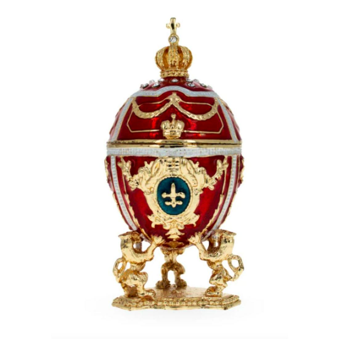 Russian Royal Lions Holding Crown Trinket Jewel Box Egg