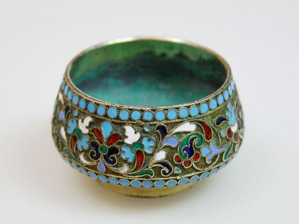 Royal Crown Derby Miniature Silver Topped Salt Vase c.1890KHLEBNIKOV - ANTIQUE RUSSIAN SILVER SUGAR BOWLMar 21, 2026RUSSIAN SILVER ENAMEL SALT CELLAR, 1895Mar 21, 2026ANTIQUE RUSSIAN SILVER SUGAR BOWLMar 21, 202619th C. Russian Enamel 84 Silver Napkin Holder20 hrs LeftRussian Silver-Gilt and Enamel Sugar Bowl, MoscowMar 15, 2026Russian Silver Salt Dish, Nemirov KolodkinMar 08, 2026Russian Silver-Gilt and Cloisonne Enamel BeakerMar 15, 2026RARE RUSSIAN SILVER CANDY BOWL, 1838Mar 21, 2026A sterling silver bowl from the Qing DynastyMar 07, 2026A Qing Dynasty copper tire cloisonné enamel flower pattern water bowlMar 21, 2026Large Chinese Cloisonne Enamel BowlMar 10, 2026Russian Silver and Cloisonne Enamel BraceletMar 15, 2026ANTIQUE RUSSIAN SILVER GILT & ENAMEL SPOONMar 21, 2026A Cloisonné Enamel 'Dragon' Bowl7 days LeftVINTAGE SILVER PLATED HARVEST BOWL BY FRANKLIN MINT3 days Left