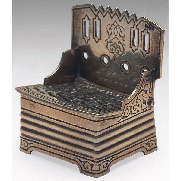 A SILVER HANUKKAH LAMP. Germany. In the manner of the 18th century.2 days LeftVintage Chinese Pure Silver TeapotA 19th century Russian silver throne salt maker possibly, S M Ikonikov, Moscow 1874RUSSIAN IMPERIAL SILVER FILIGREE SALT THRONE CHAIRMar 07, 2026German Pewter Hanukkah MenorahFeb 25, 2026Russian Silver Detailed Engraved BeakerMar 03, 2026Zarmella Argenti Saint Mark .800 Silver Master Salt Cellar 4 x 2 x 13 days LeftA Chinese silver dragon hexagona water pot with stamp at bottom2 days LeftBronze Hanukkah Menorah, PolandFeb 25, 2026Bronze Hanukkah Menorah, PolandFeb 25, 2026Silver-Plated Hanukkah Menorah, PolandFeb 25, 2026Pewter Hanukkah Menorah, BohemiaFeb 25, 2026Art Deco Silver Plated Centerpiece with Cut Crystal InsertMar 03, 2026Antique Russian Silver BeakerMar 03, 2026Judaica Brass Oil Lamp Menorahs, 2Apr 14, 2026Art Deco Silver Plated Centerpiece with Cut Crystal Insert4 days Left