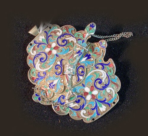 RUSSIAN SILVER AND ENAMEL BROOCH With pendant loop