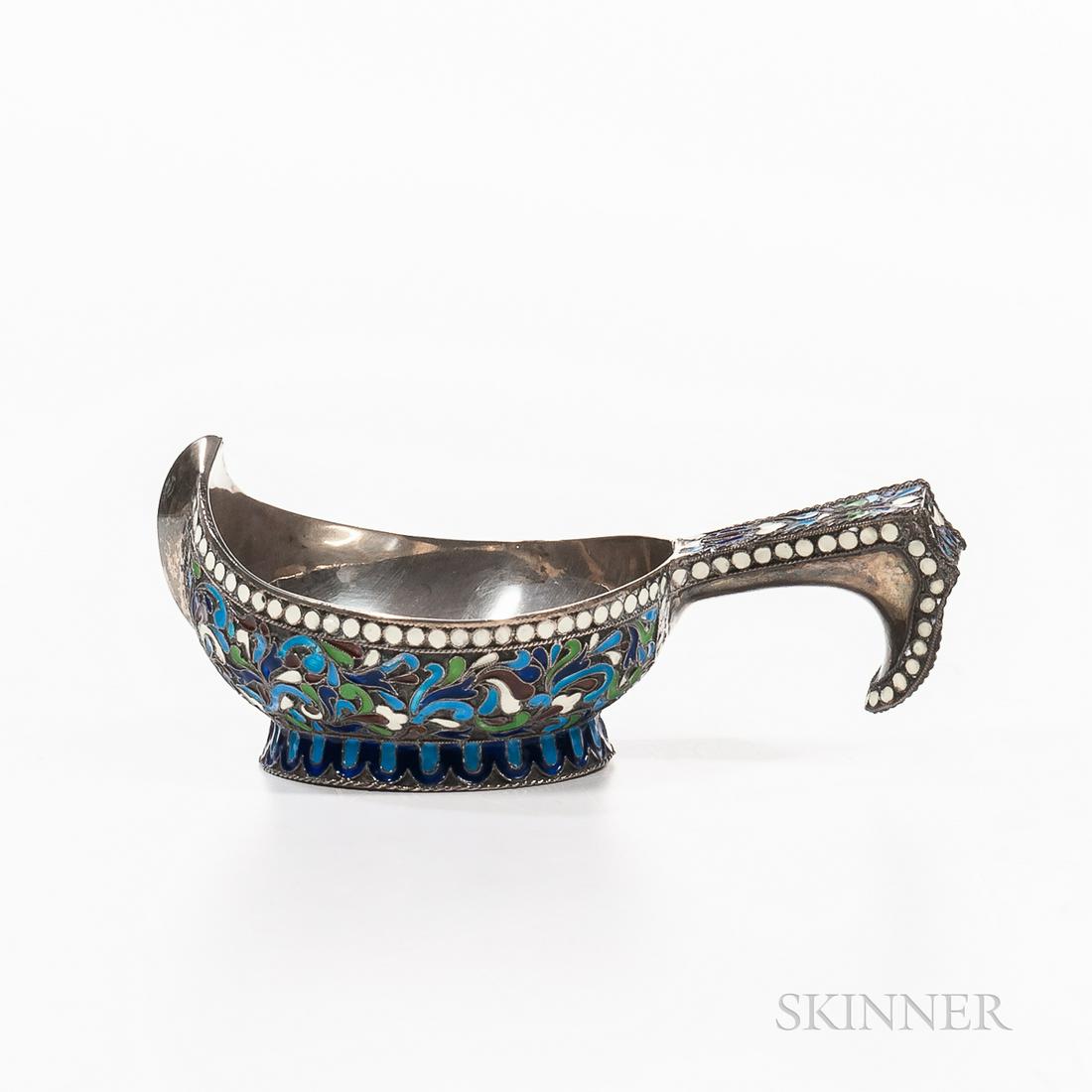 Russian Silver and Enameled Kovsh
